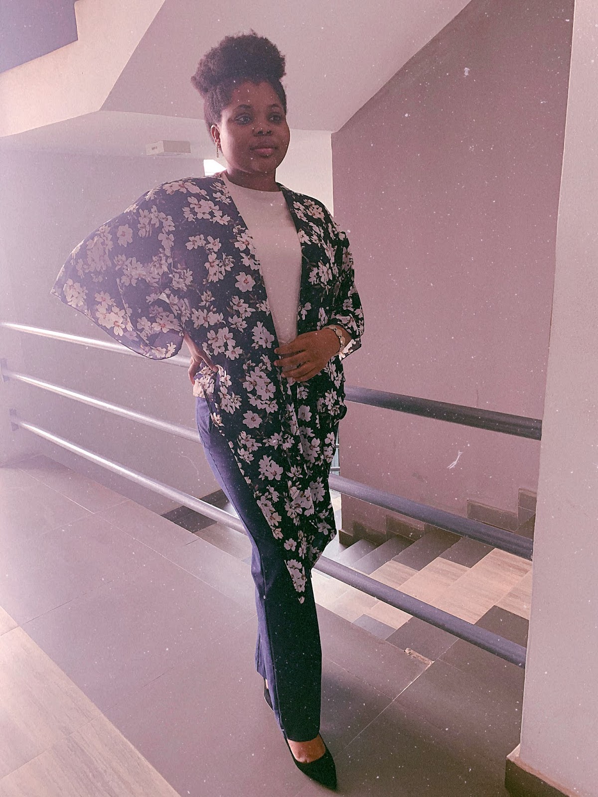 A kimono can be turned into a modern chic style in many different ways. In this case, I styled it with a halter top and a slim fit trouser. This outfit is a typical midweek office wear even though I wore it on a Monday.